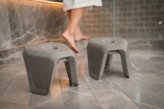 Der stuul ist ein Toilettenhocker, dessen ansprechendes Design gut in jedes Bad passt.
